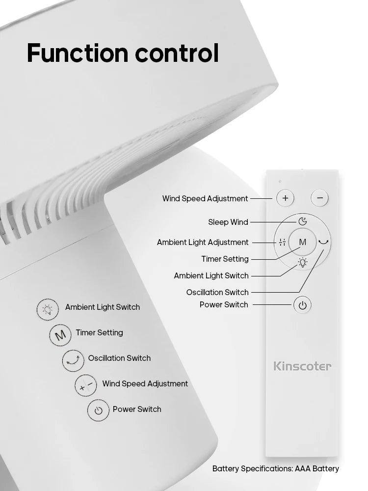 Control your comfort without moving an inch. The included remote lets you adjust speed, power, and modes effortlessly. And for added atmosphere, the built-in ambient lighting at the base casts a gentle glow, perfect for evening use or creating a calming bedtime vibe.